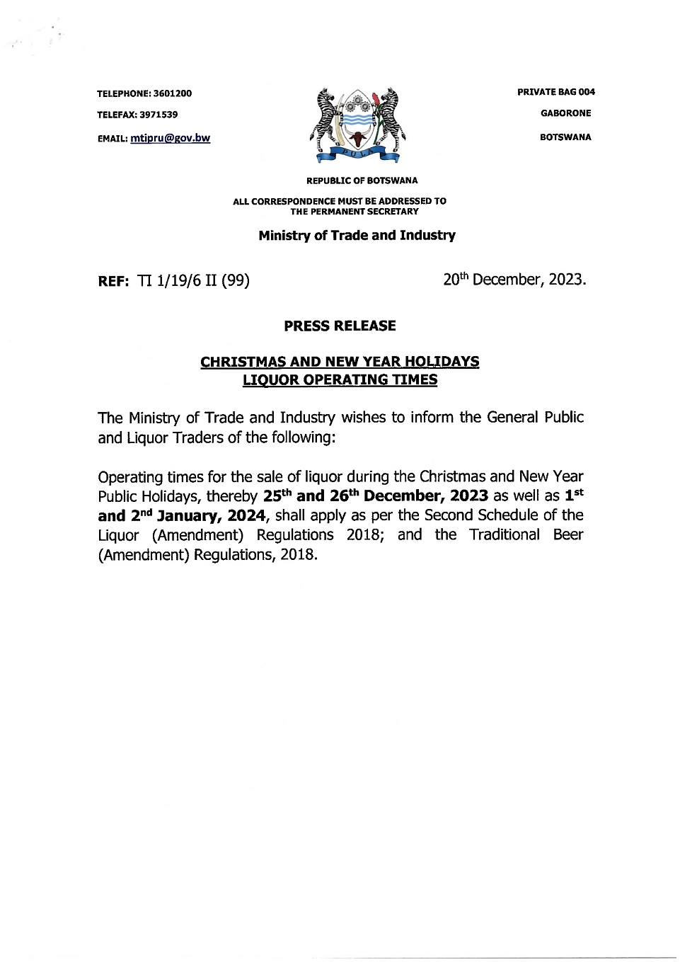 Home Announcements PUBLIC NOTICE Announcements PUBLIC NOTICE By Own Correspondent - December 22, 2023 1348 0 FacebookTwitterPinterestWhatsApp RELATED ARTICLESMORE FROM AUTHOR BERA announces decreases in petrol prices ‘Bank of Botswana launches refurbished headquarters’ Add your first comment to this post Full Name Email Address