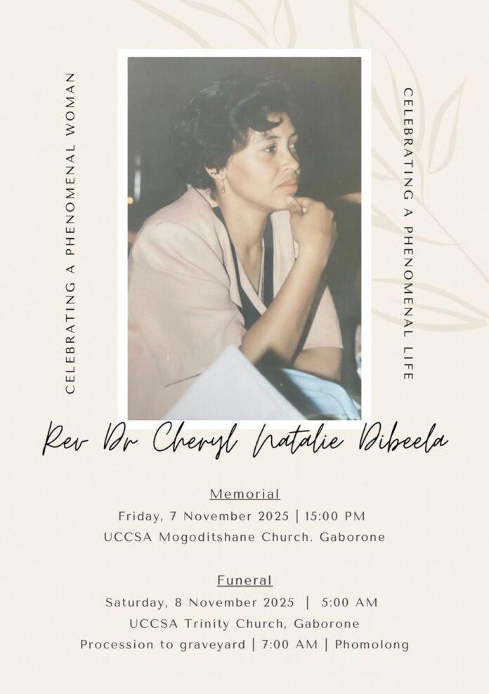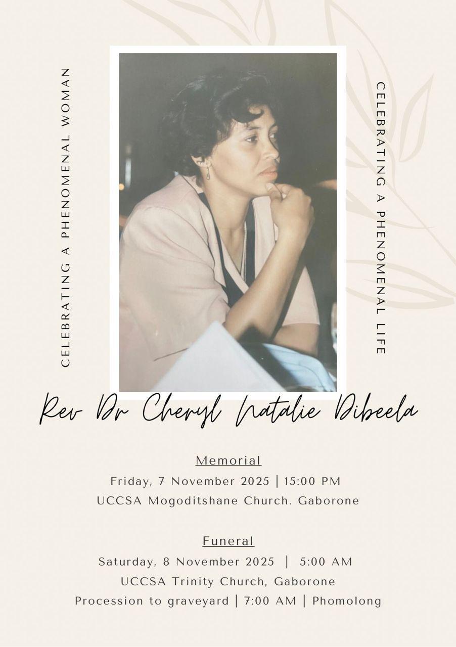 Cheryl Dibeela (aka MmaLorato) was a caring pastor, a community and a human rights activist. She was extremely loyal to her husband who she elected to follow to Botswana in retirement. They did almost everything together. This included pastoral work amongst rural communities. We saw this commitment especially with those who were less privileged than her.