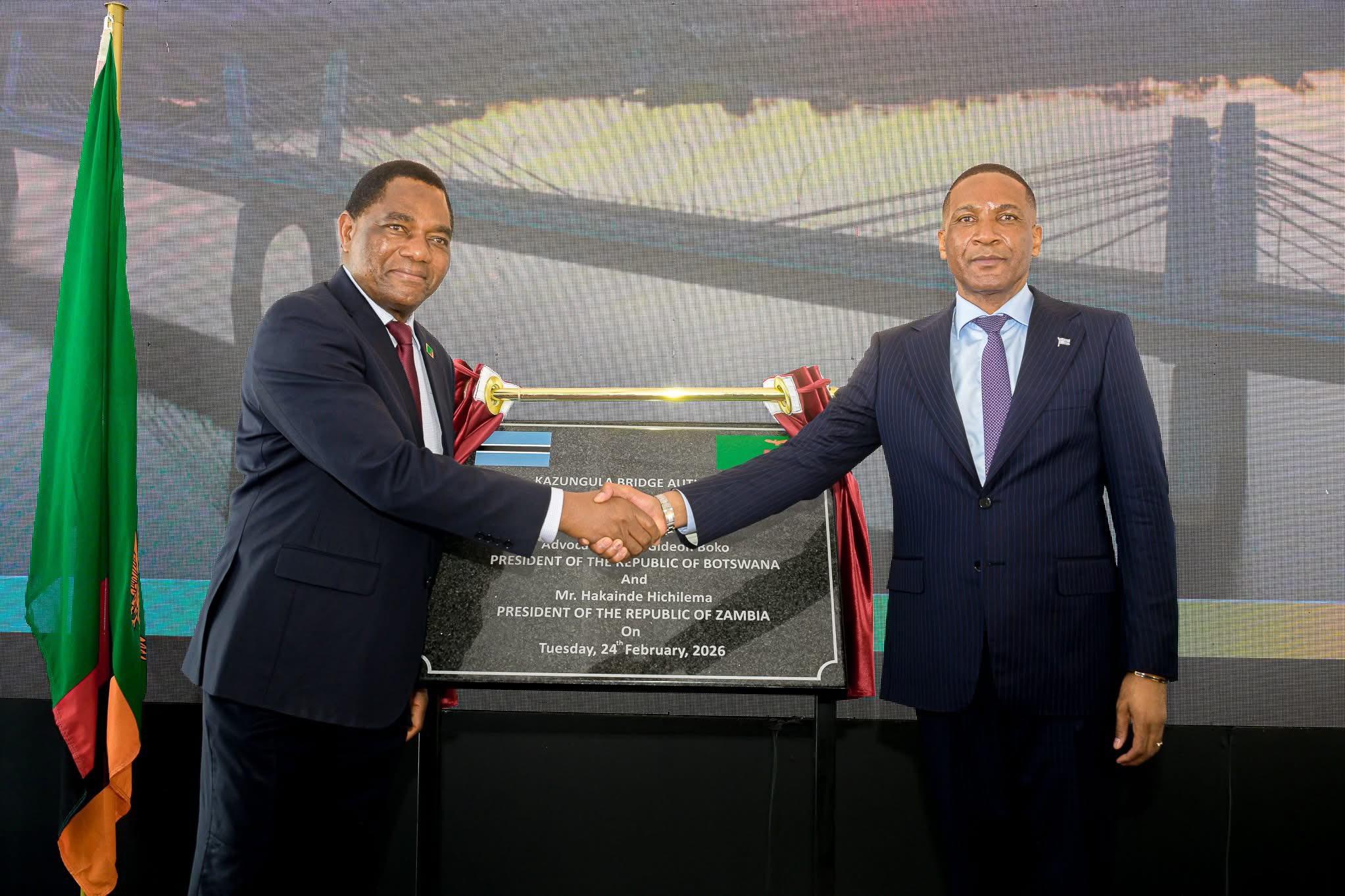 President Duma Boko and President Hakainde Hichilema of Zambia stood united in purpose on the wet shores of the scenic Chobe and Zambezi Rivers, to officially launch the Kazungula Bridge Authority (KBA) Tuesday.